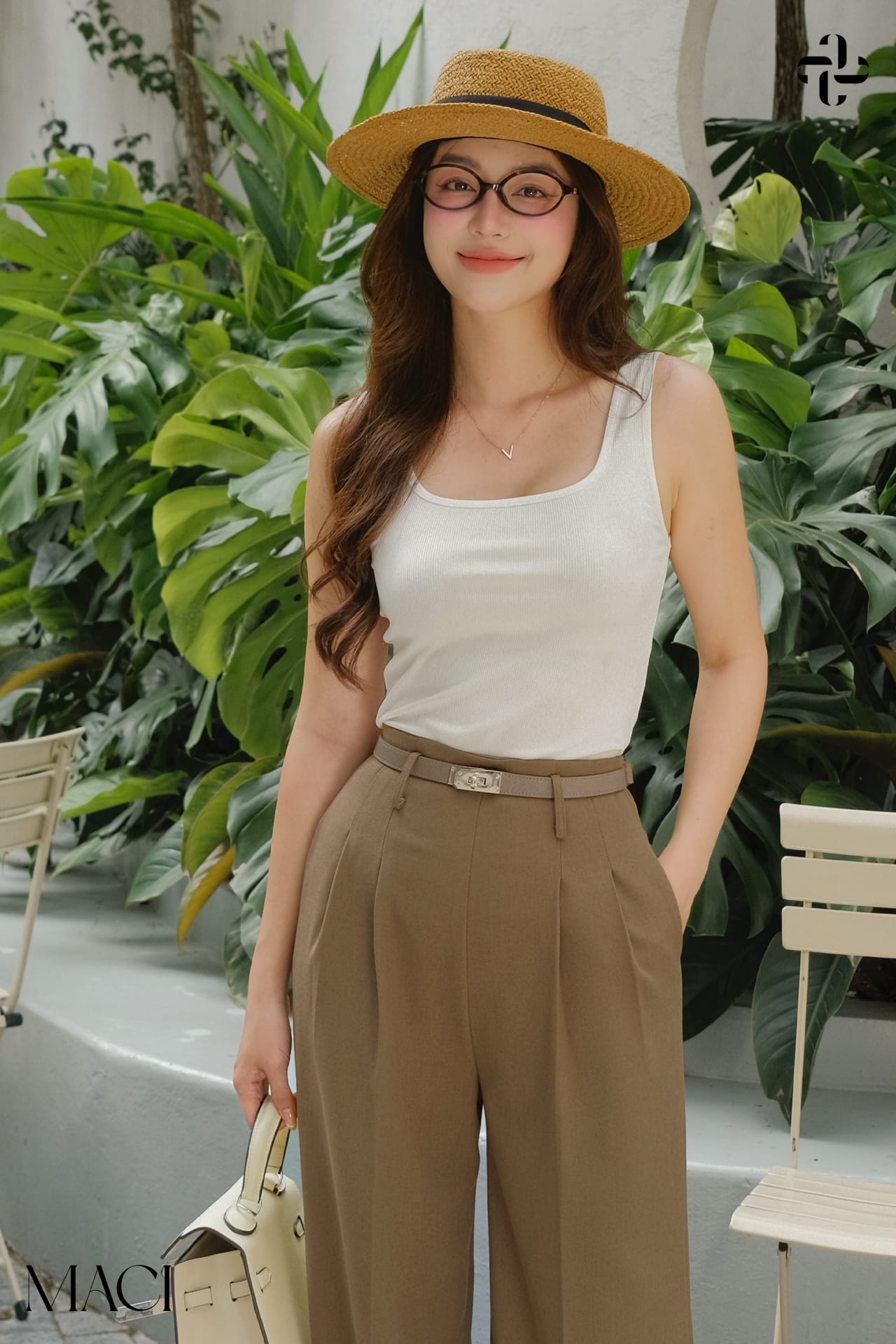 – Áo thun gân 2 dây, dáng ôm tôn dáng