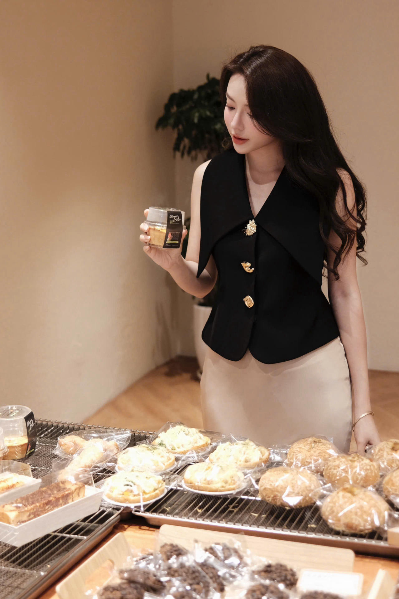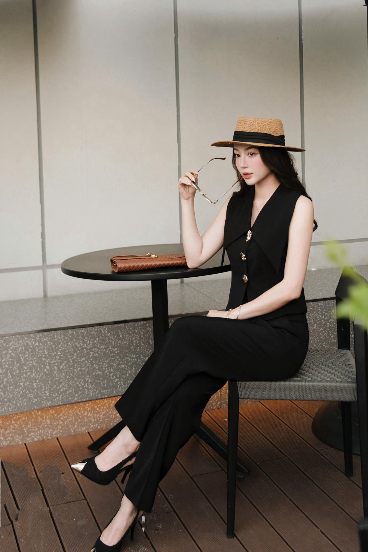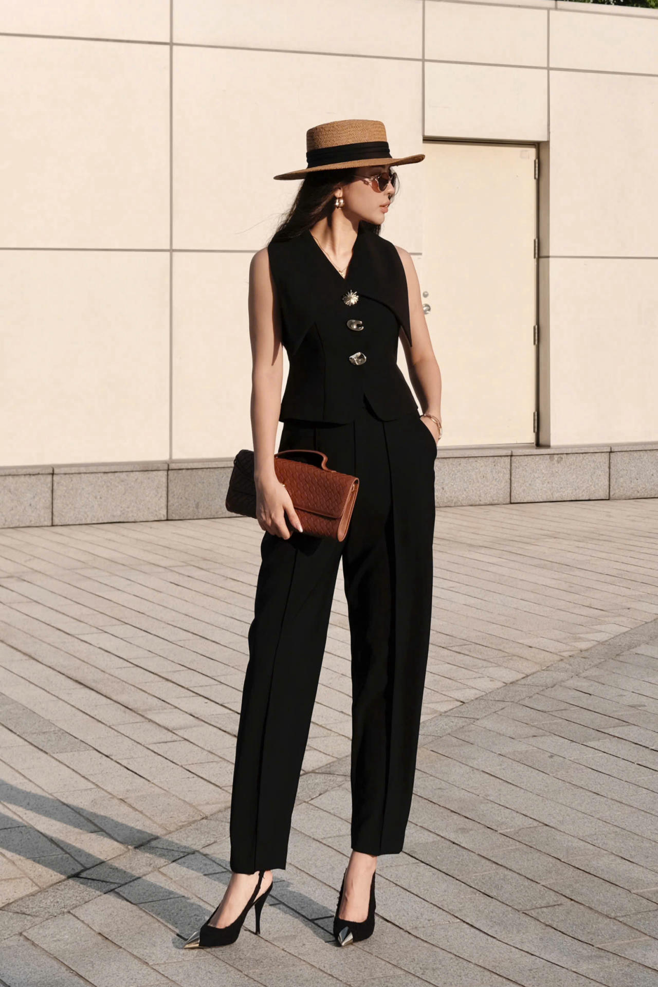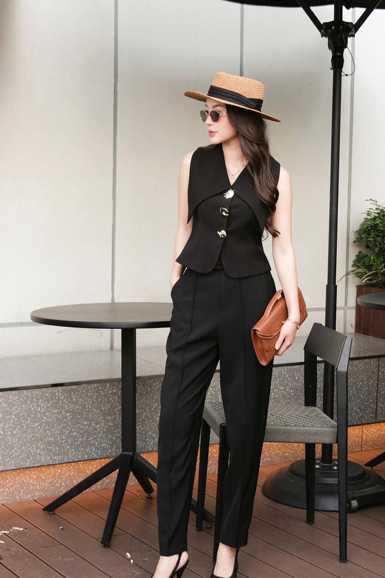 Áo Gile Đen Cổ Cánh Nhạn Phối Khuy Vàng Cách Điệu MACI by MKC MCAGLDE0107 Thời Trang Nữ Thiết Kế Độc Quyền Cao Cấp – Sang Trọng, Thanh Lịch Dễ Phối Đồ
