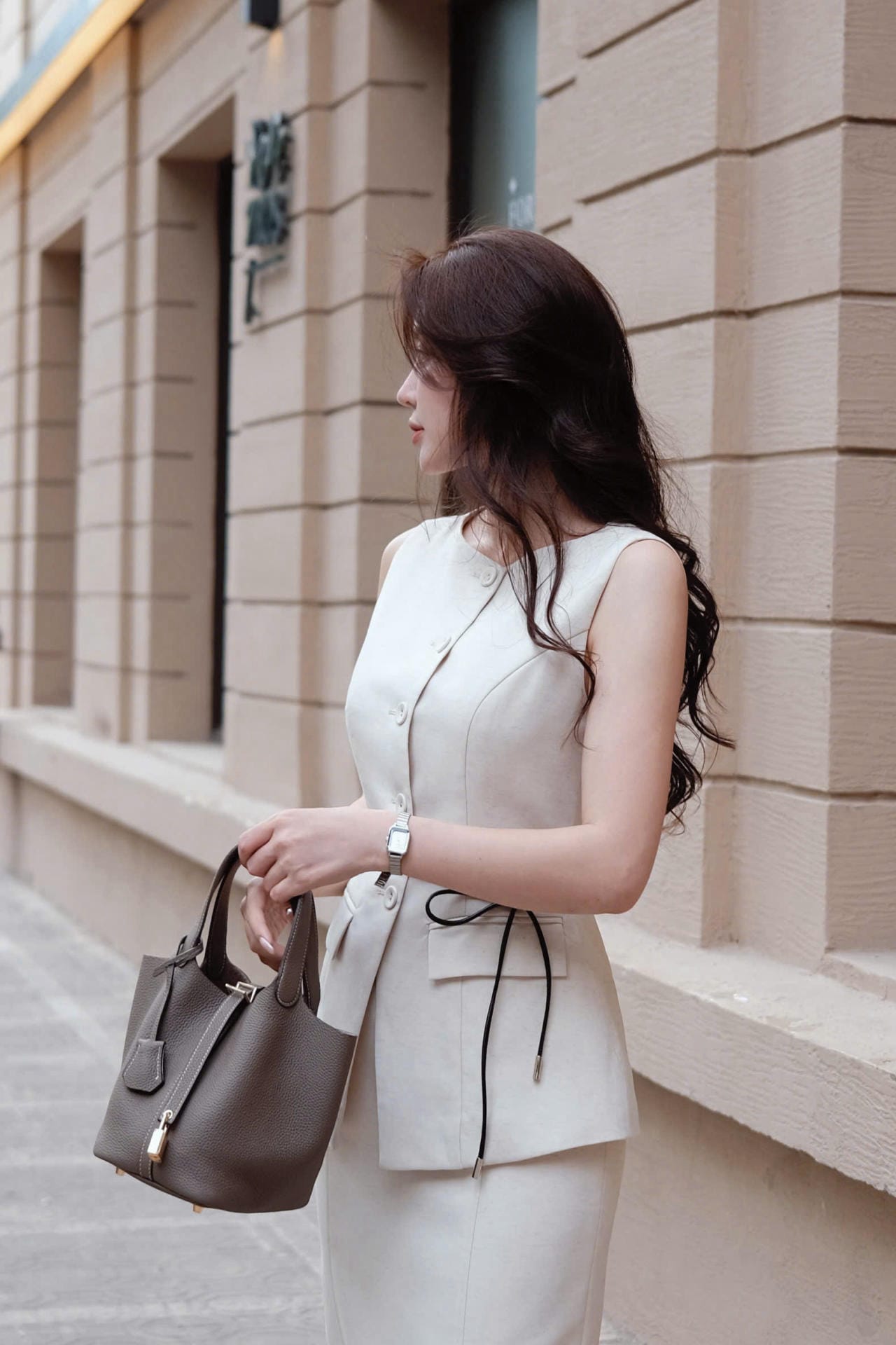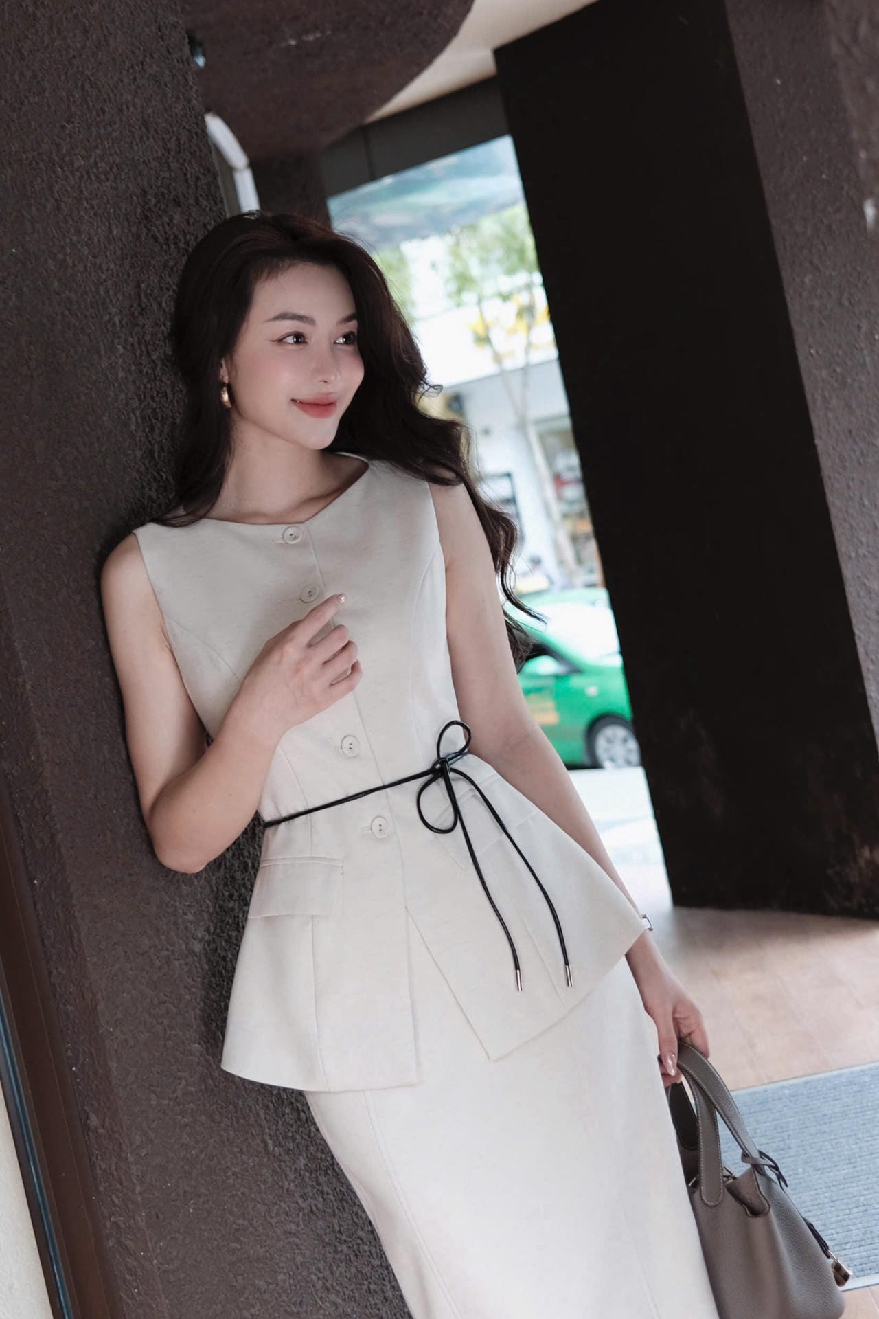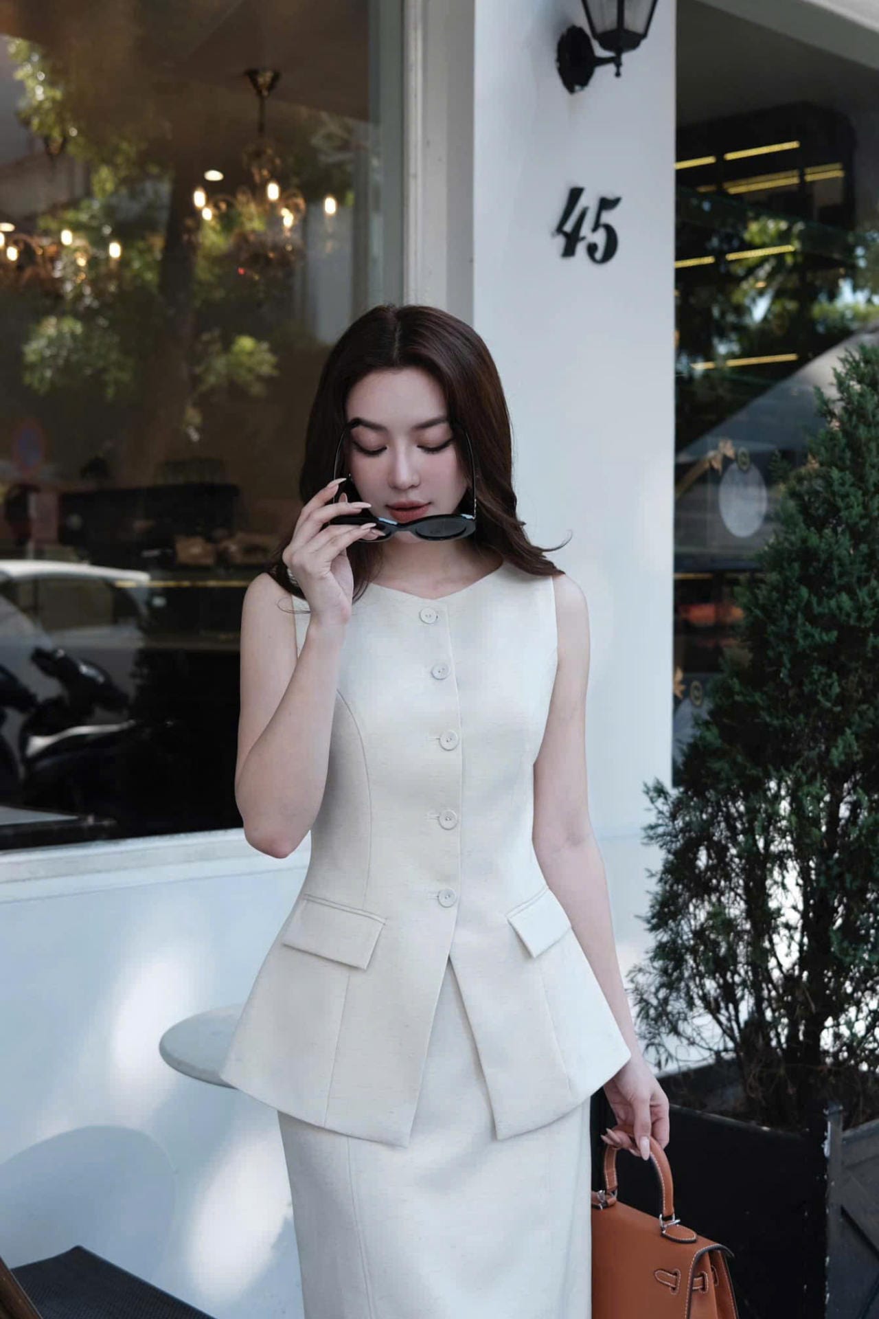 Áo Gile Khuy Bọc 2 Lớp Cao Cấp Chất Liệu Line Hàn MACI by MKC MCAGLTR0098 Thời Trang Nữ Thiết Kế Độc Quyền