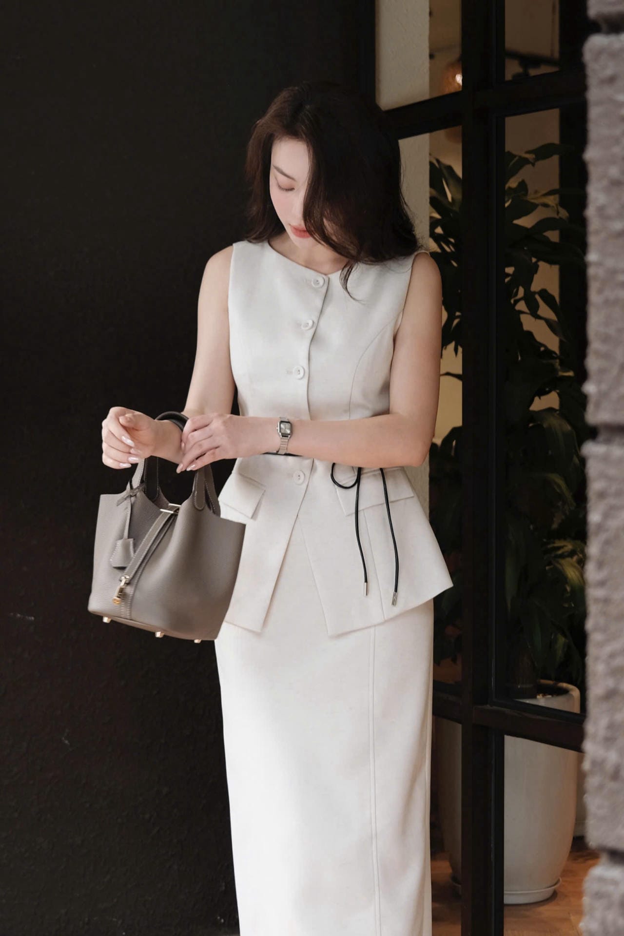 Áo Gile Khuy Bọc 2 Lớp Cao Cấp Chất Liệu Line Hàn MACI by MKC MCAGLTR0098 Thời Trang Nữ Thiết Kế Độc Quyền Cao Cấp – Sang Trọng, Thanh Lịch Dễ Phối Đồ