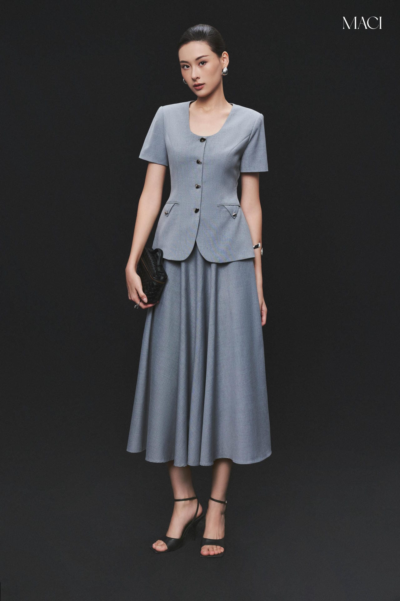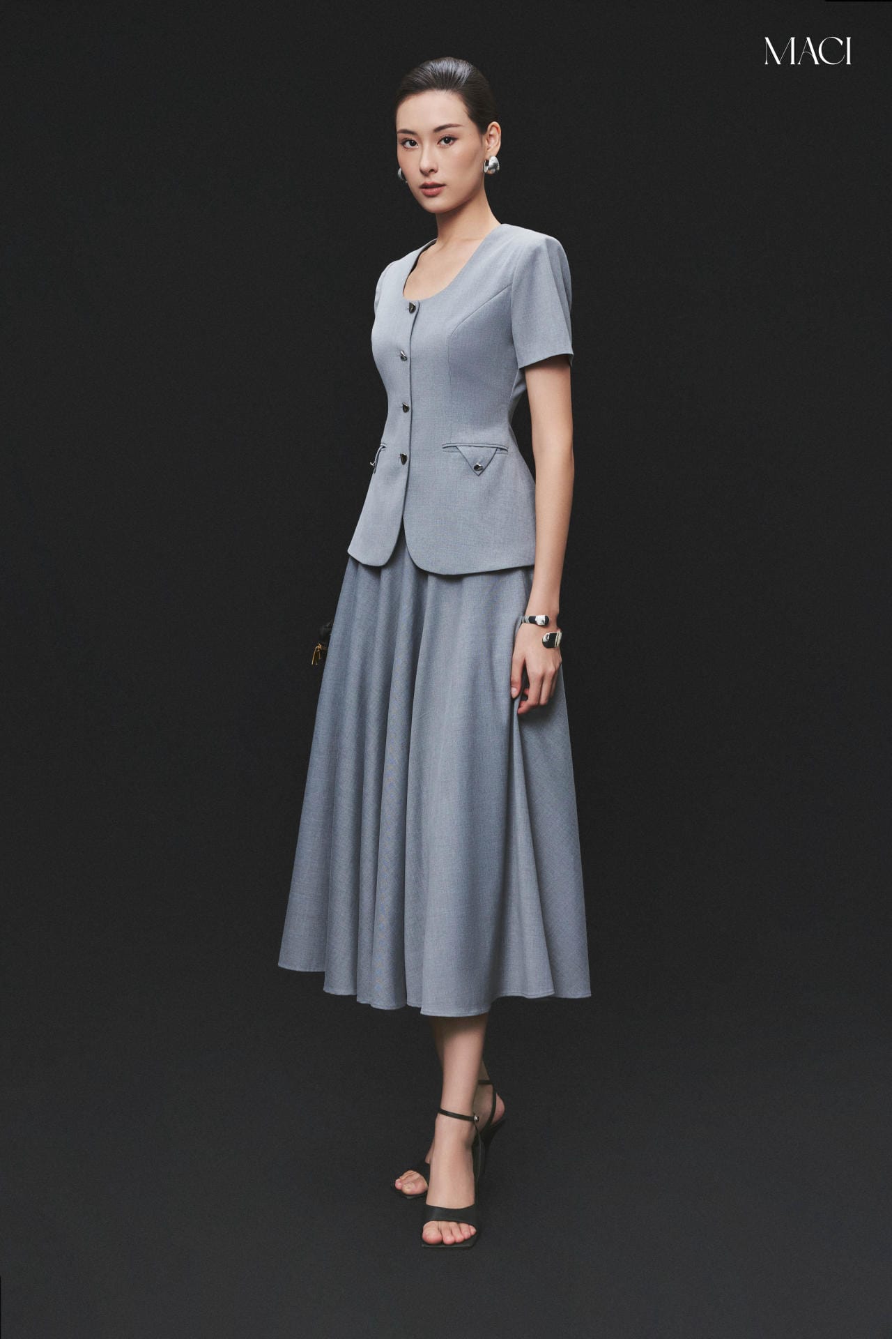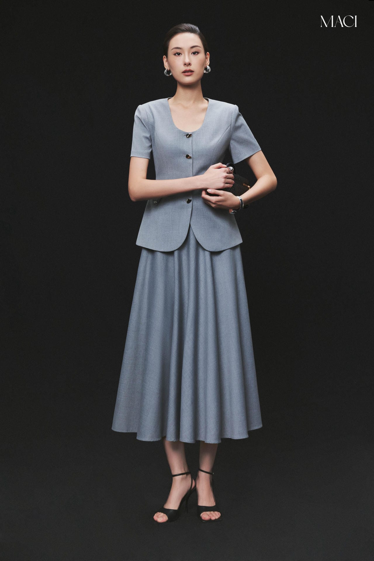 Áo Kí Giả Cổ Vuông Khuy Titan Cao Cấp Màu Ghi MACI by MKC MCAAKGH0165 Thời Trang Nữ Thiết Kế Độc Quyền Công Sở Cao Cấp Sang Trọng Thanh Lịch Dễ Phối Đồ
