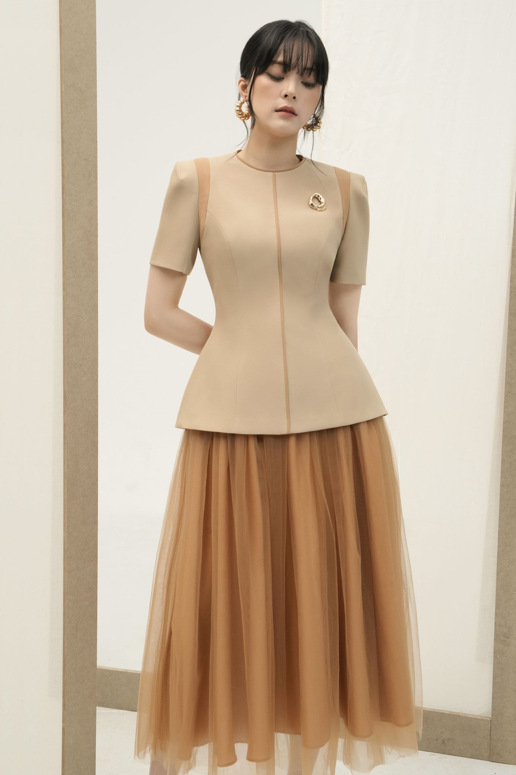 Áo Peplum Ký Giả Màu Be Tặng Kèm Khuy Cài MACI by MKC MCAAVBE0135 Thời Trang Nữ Thiết Kế Độc Quyền
