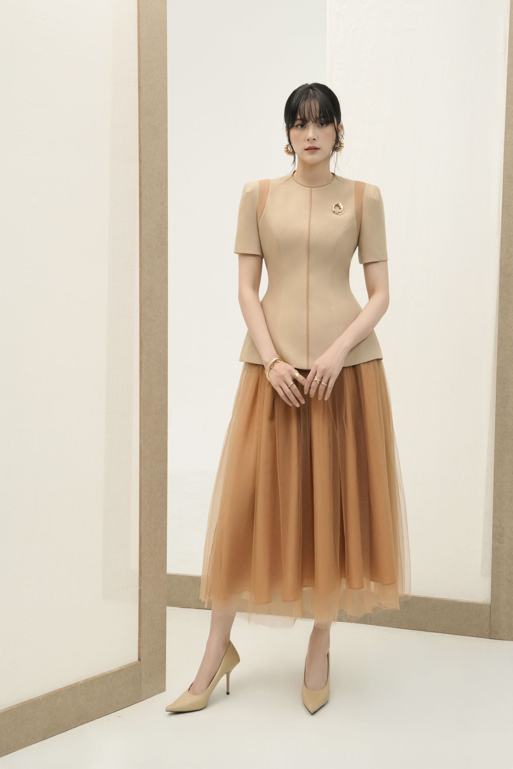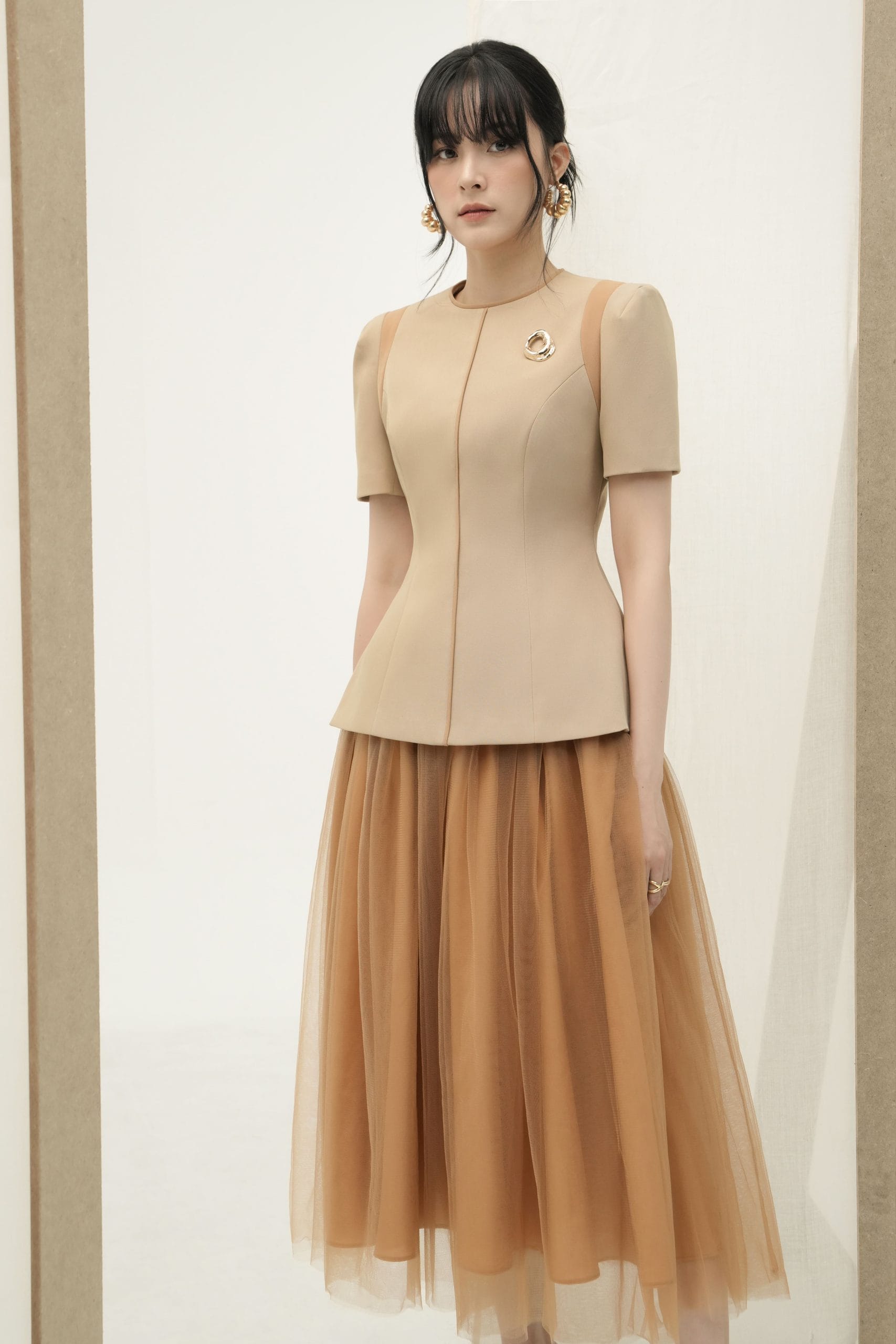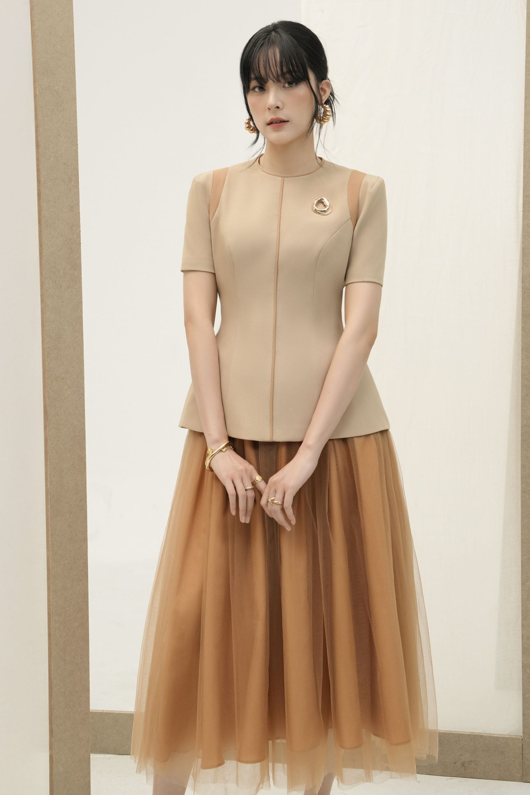 – Phối viền cùng tông tạo điểm nhấn tinh tế ở thân áo