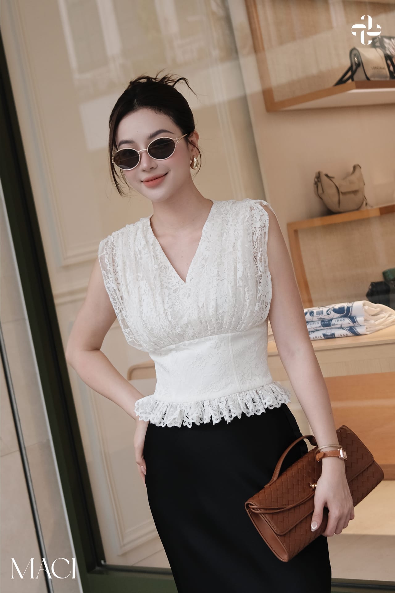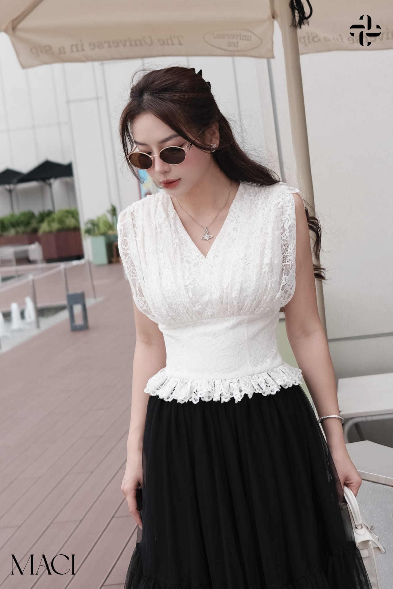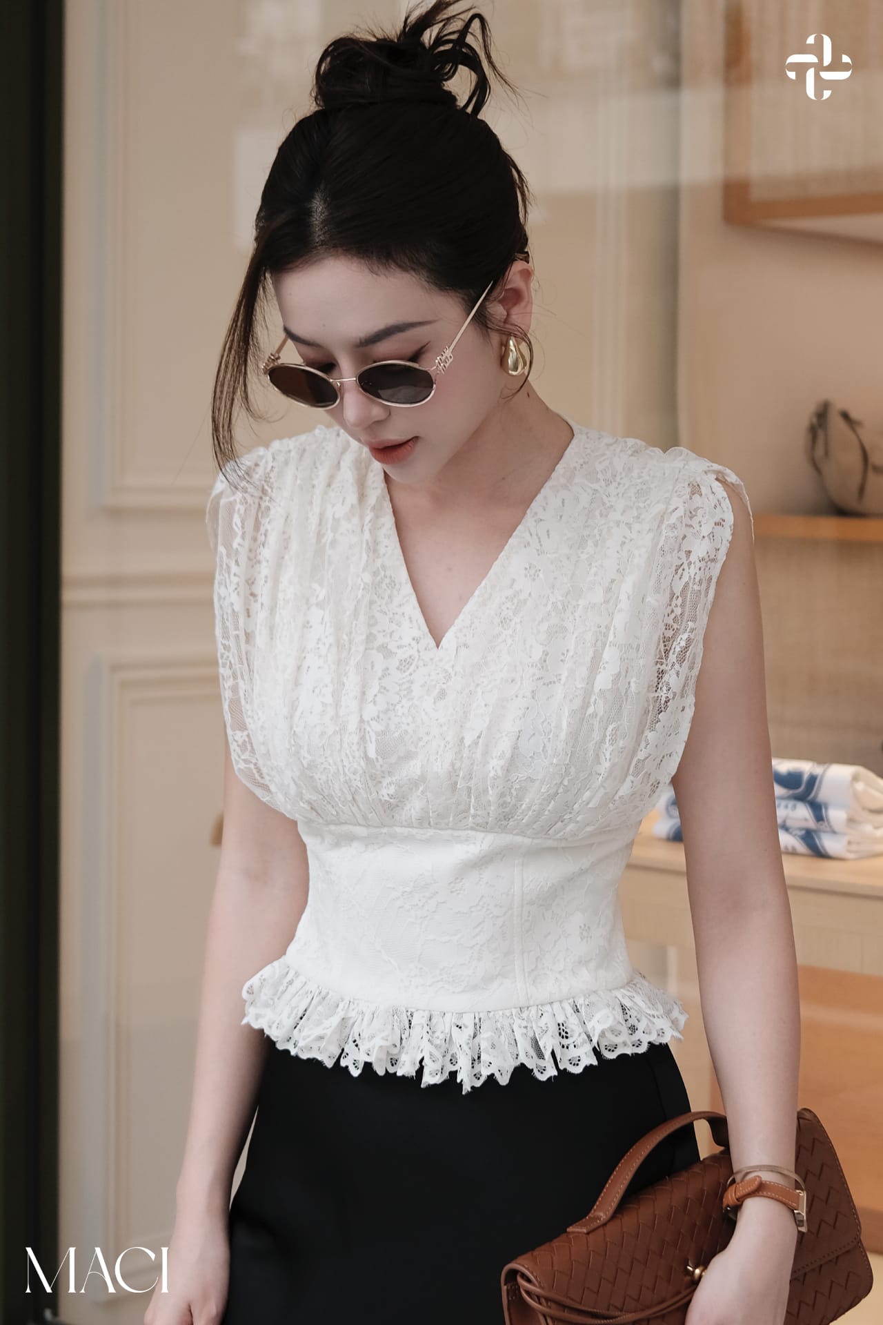 Áo Ren Trắng Xếp Li Vai Chờm MACI by MKC MCAATTR0119 Thời Trang Nữ Thiết Kế Độc Quyền