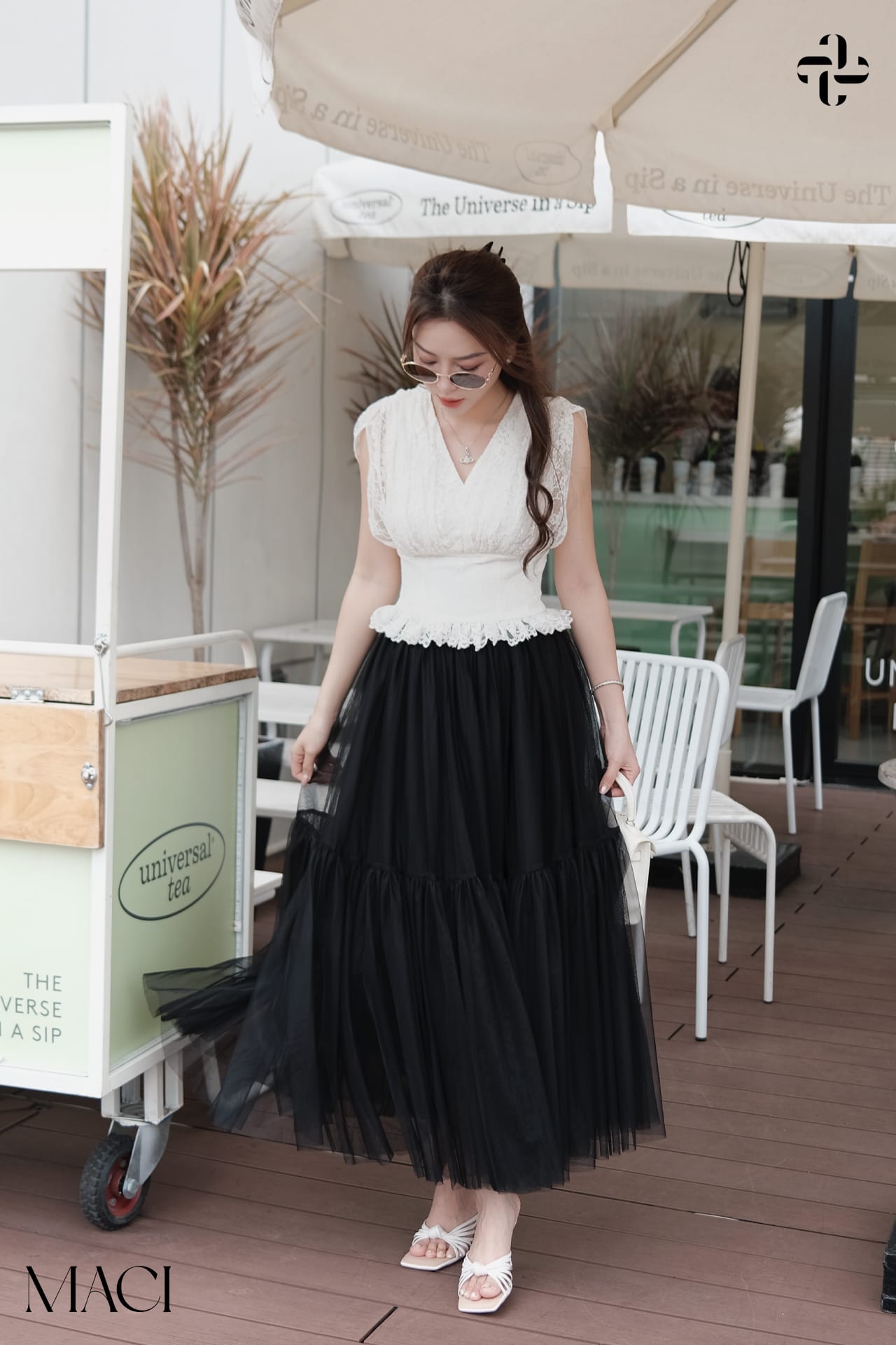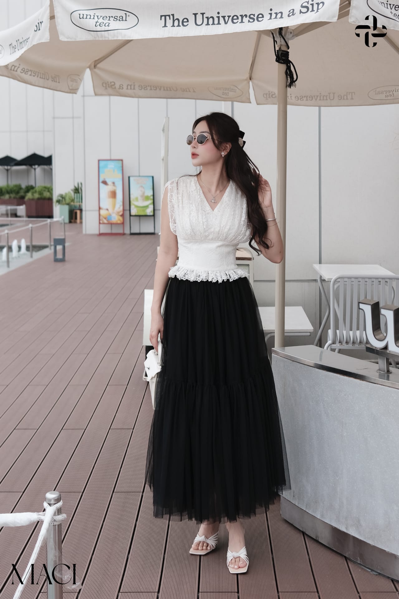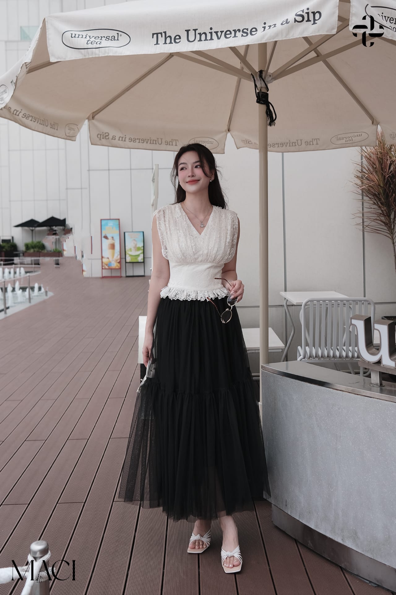 Áo Ren Trắng Xếp Li Vai Chờm MACI by MKC MCAATTR0119 Thời Trang Nữ Thiết Kế Độc Quyền