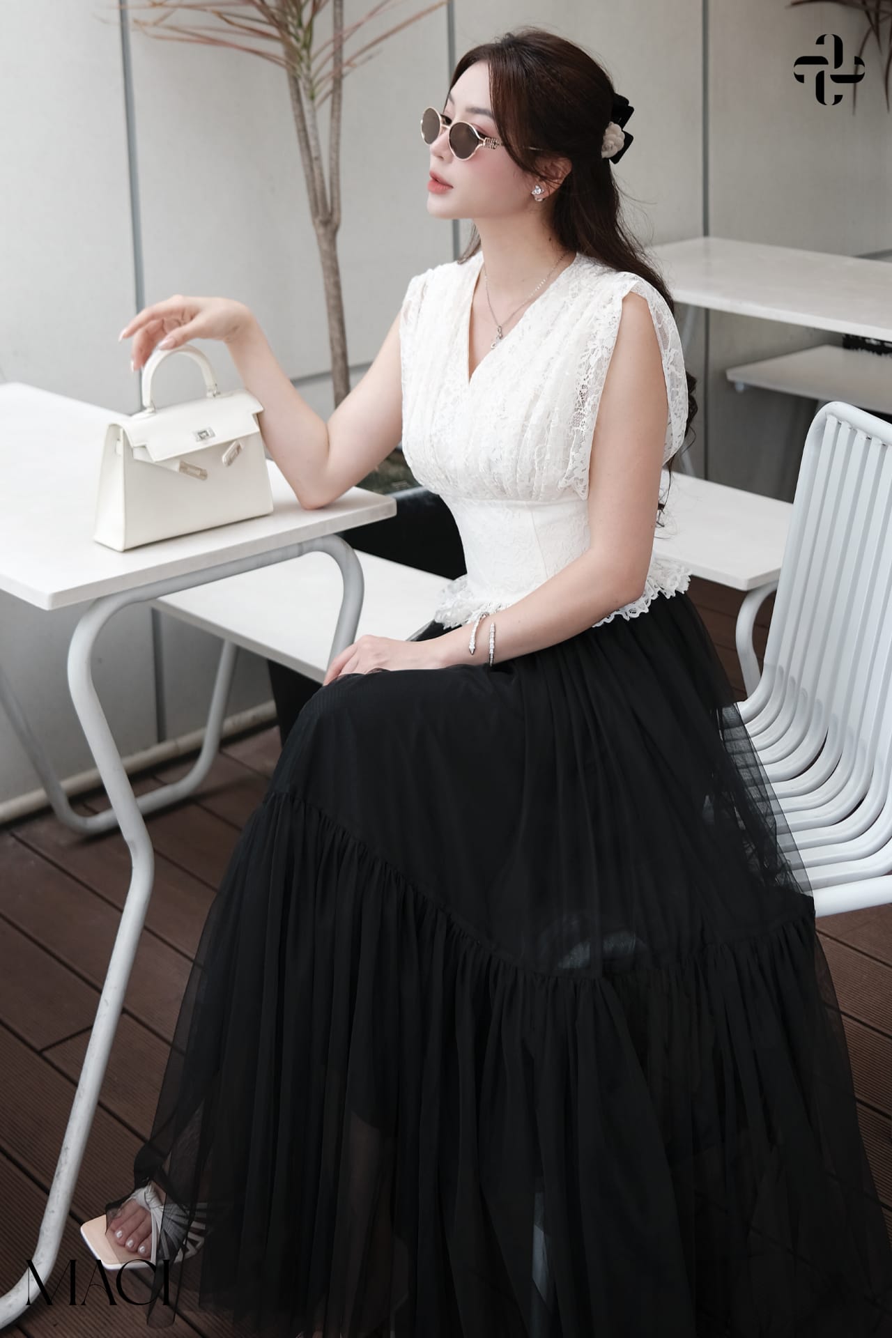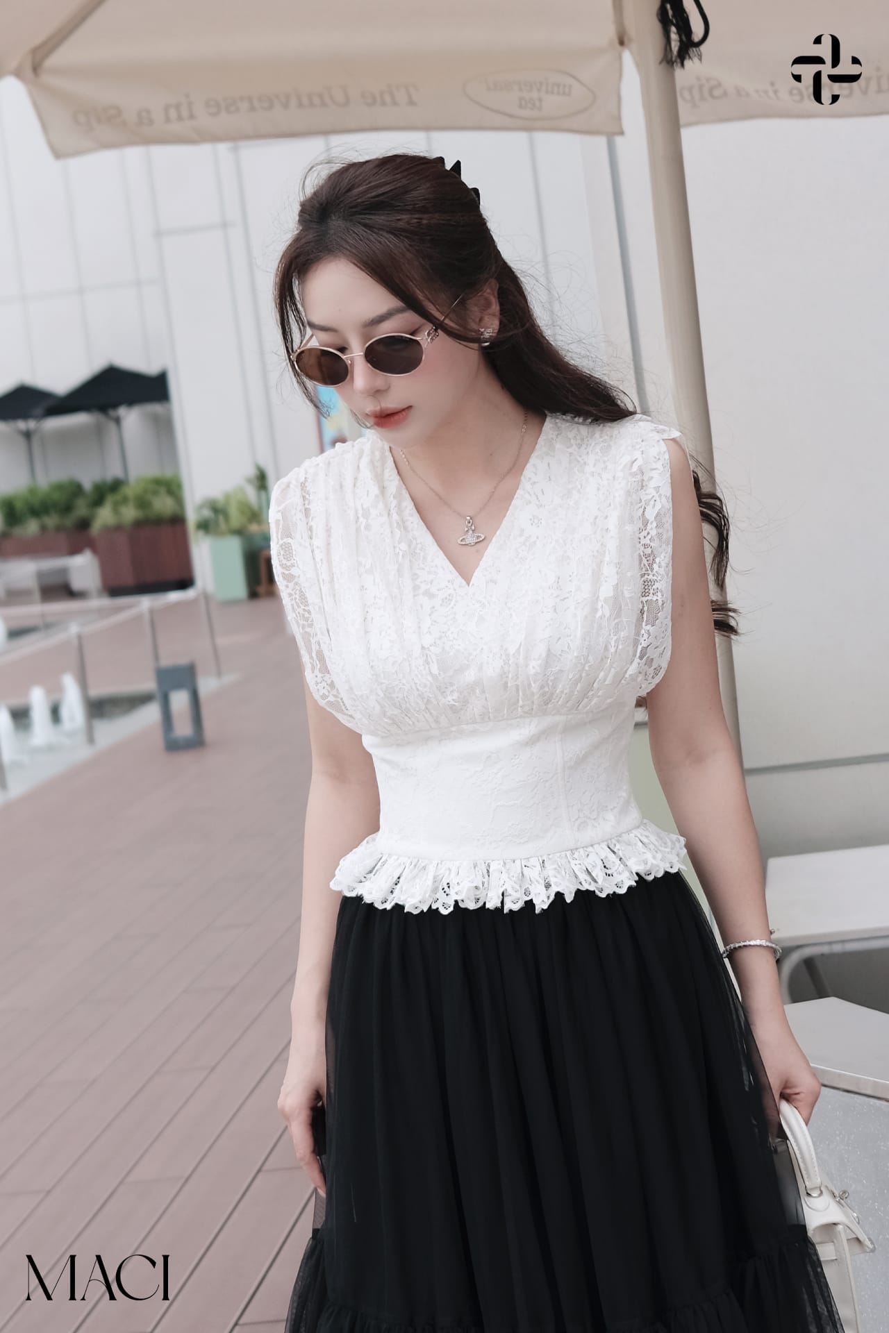 Áo Ren Trắng Xếp Li Vai Chờm MACI by MKC MCAATTR0119 Thời Trang Nữ Thiết Kế Độc Quyền Cao Cấp – Sang Trọng, Thanh Lịch Dễ Phối Đồ