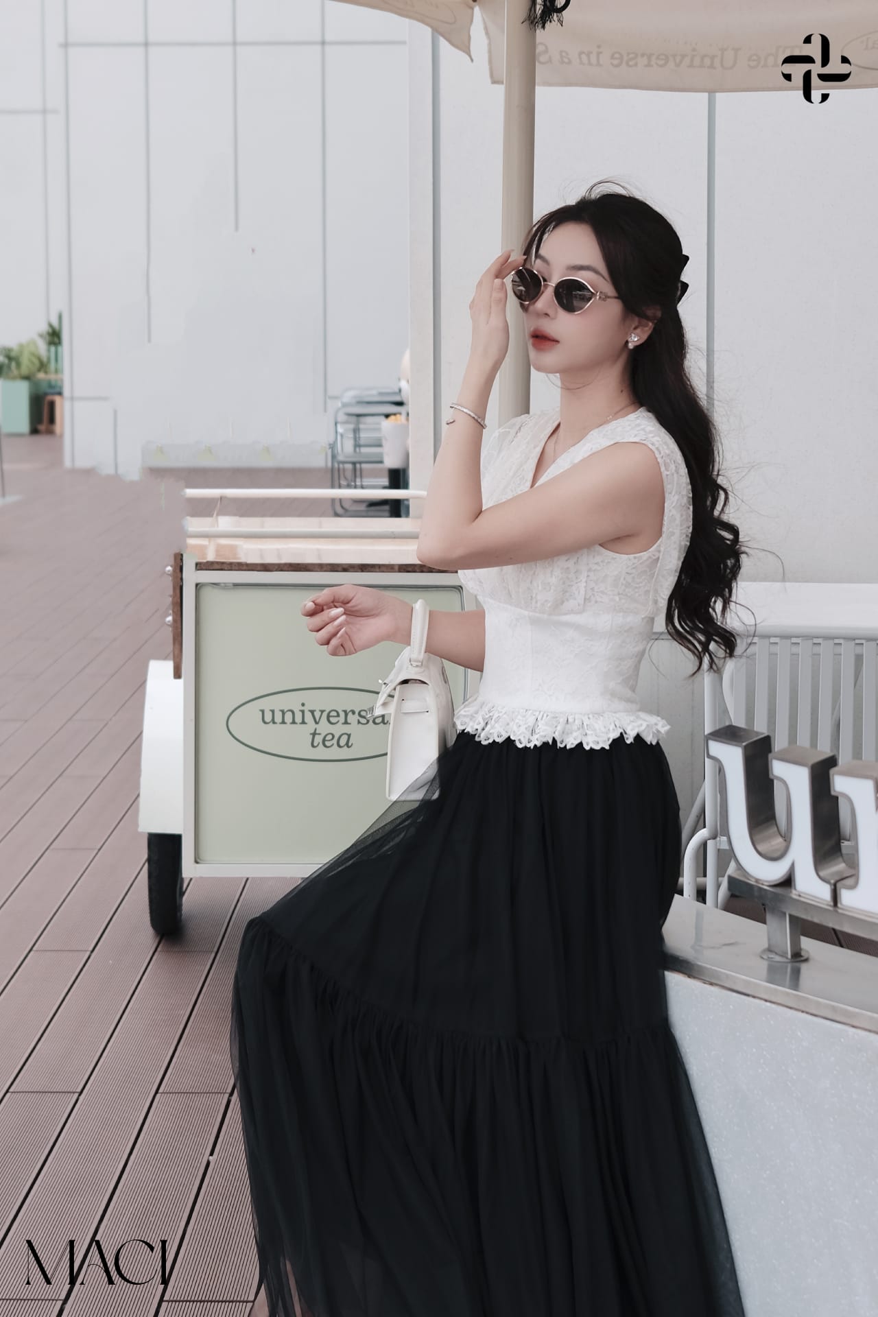 – Áo sát nách phối ren trắng tinh khôi, thanh lịch