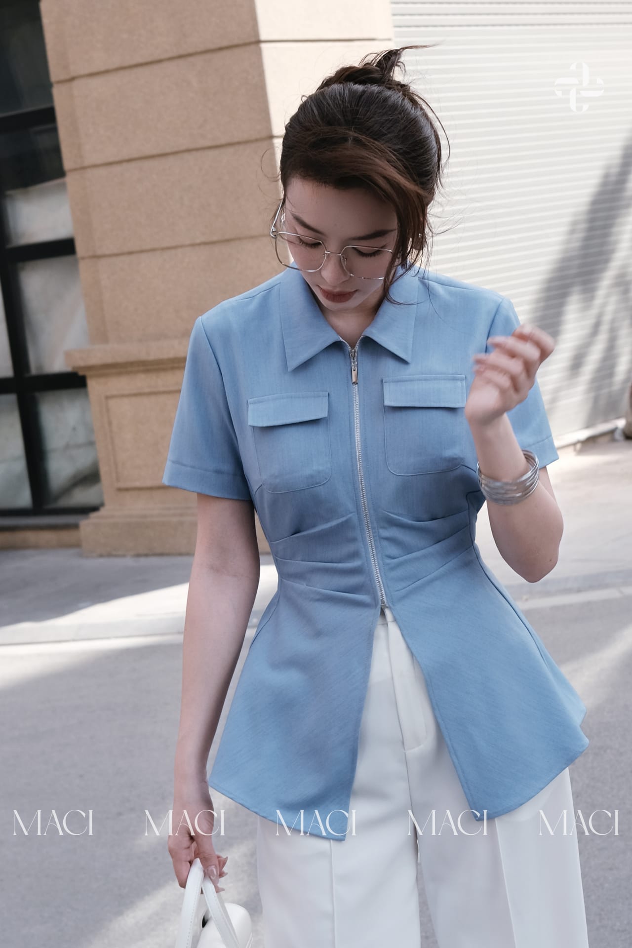 Áo Sơ Mi Thô Tằm Chiết Li Eo MACI by MKC MCASMBE0162 Thời Trang Nữ Thiết Kế Độc Quyền