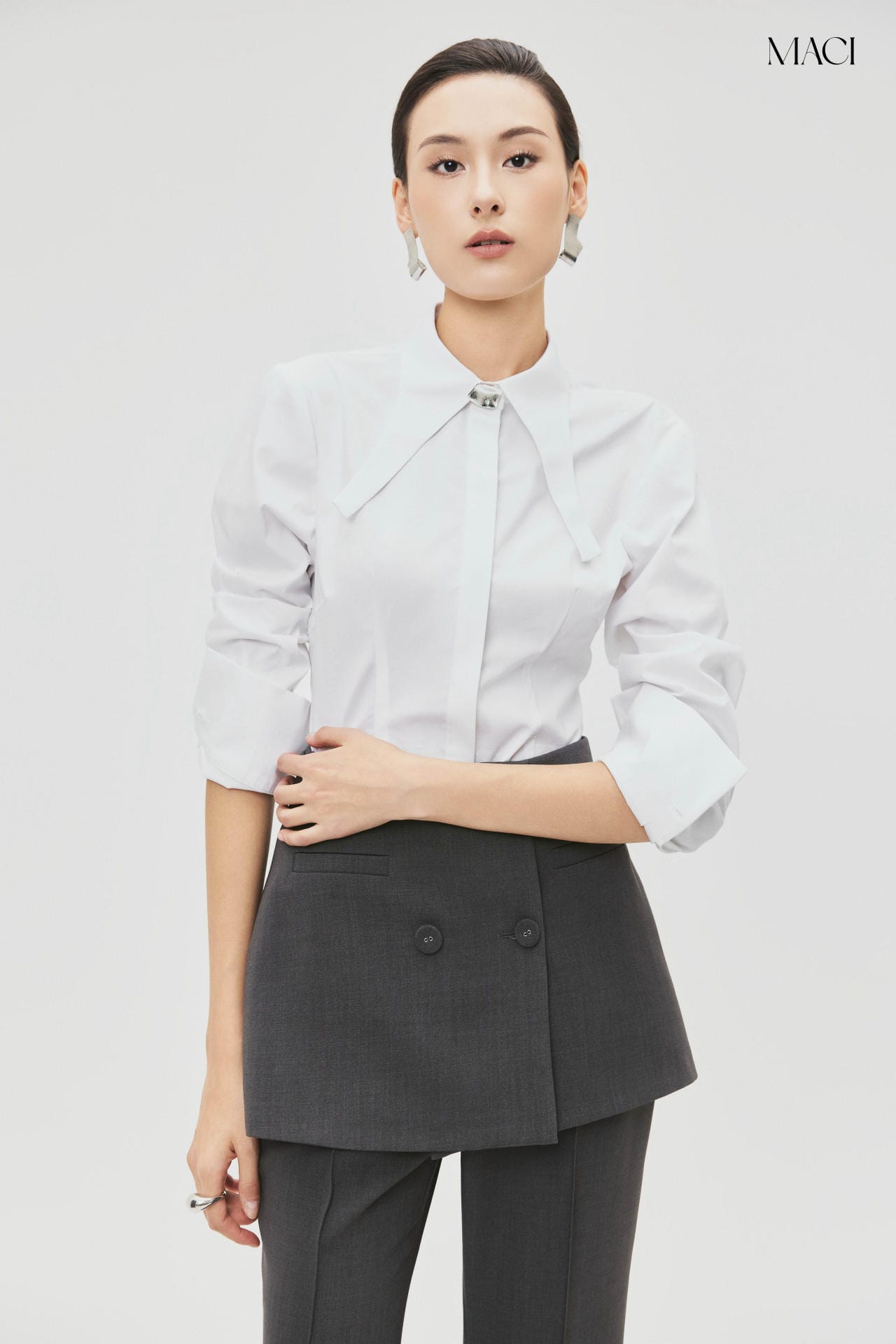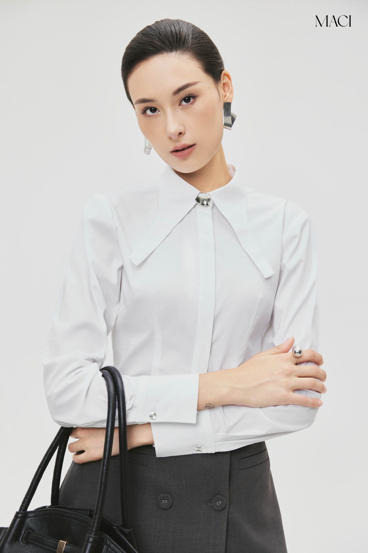 Áo Sơ Mi Trắng Cổ Nhạn Cách Điệu Bamboo MACI by MKC MCASMTR0177 Thời Trang Nữ Thiết Kế Độc Quyền Công Sở Cao Cấp Sang Trọng Thanh Lịch Dễ Phối Đồ