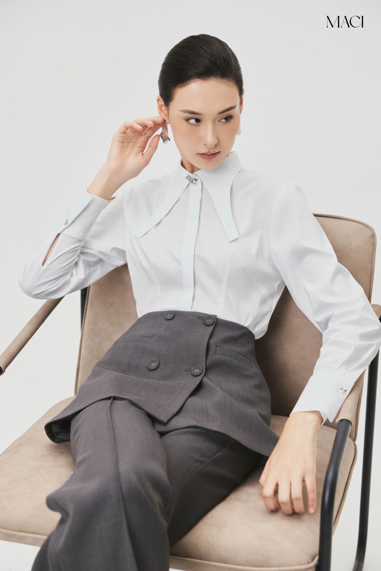 – Áo sơ mi trắng dài tay thanh lịch, phù hợp công sở