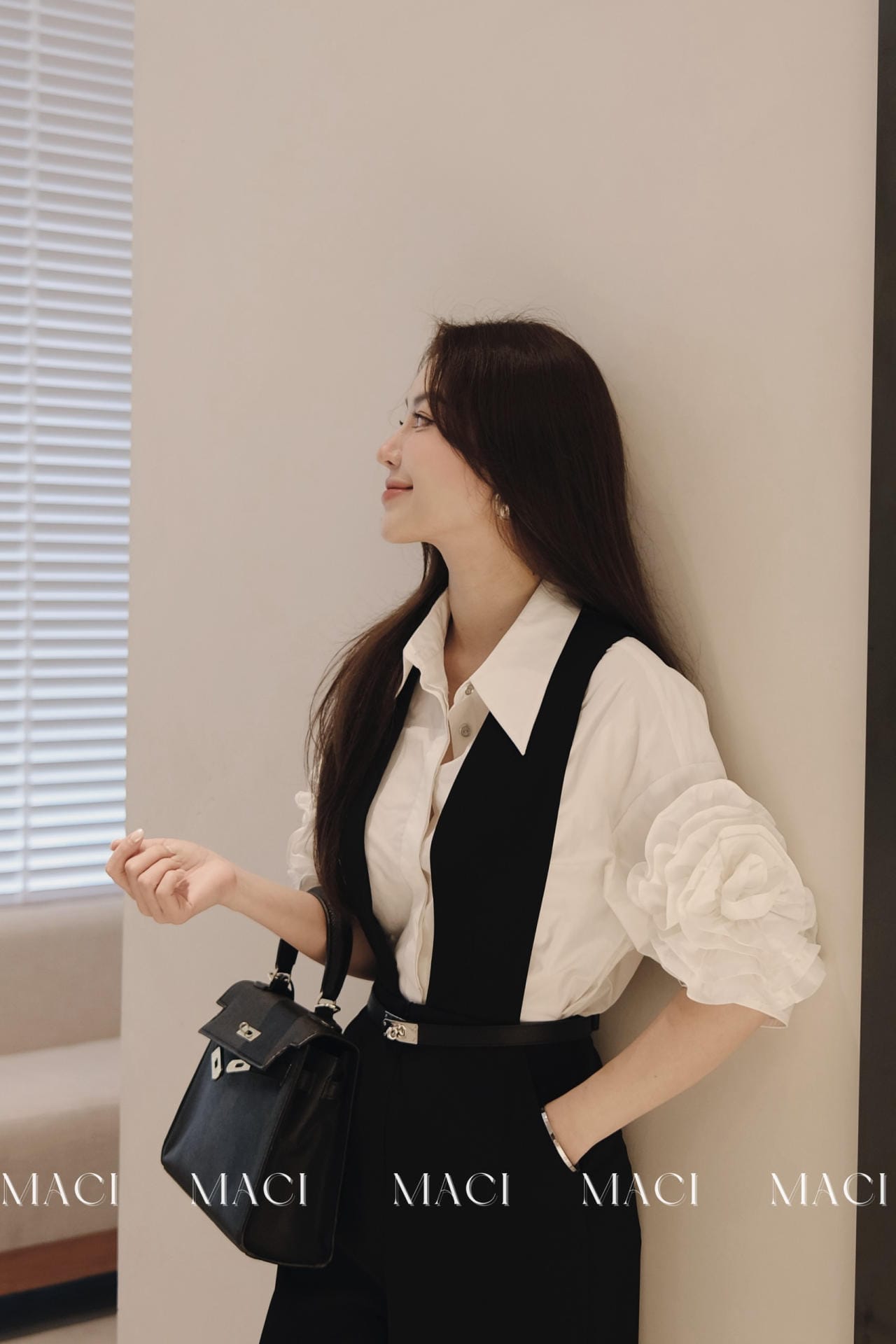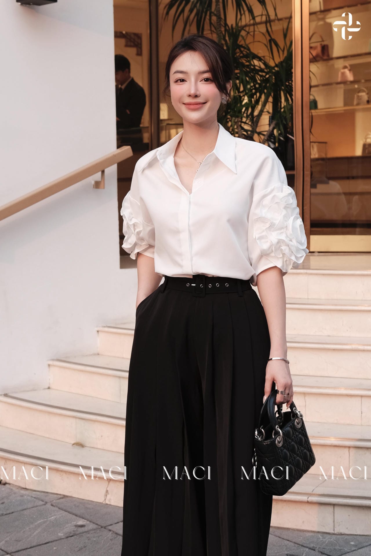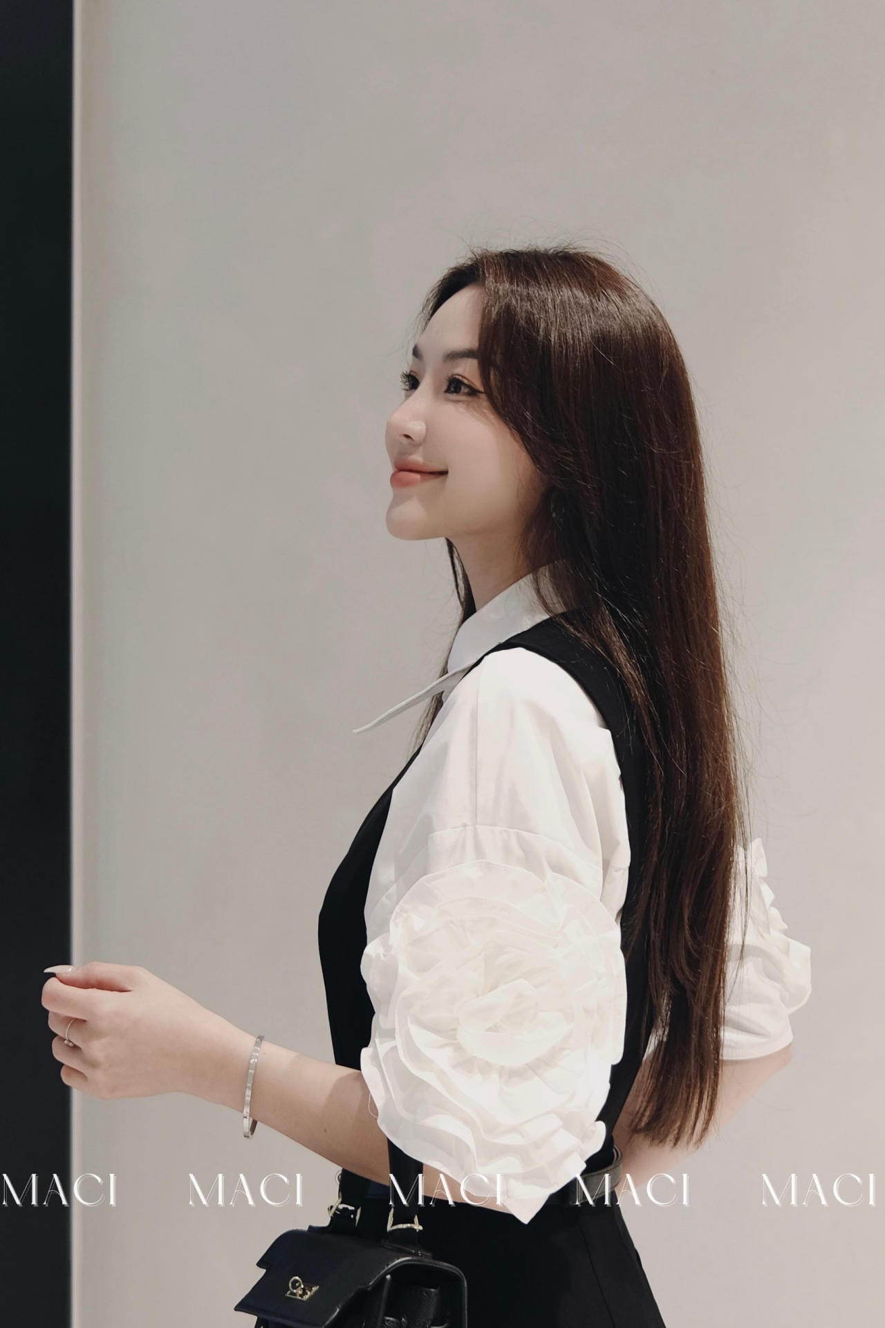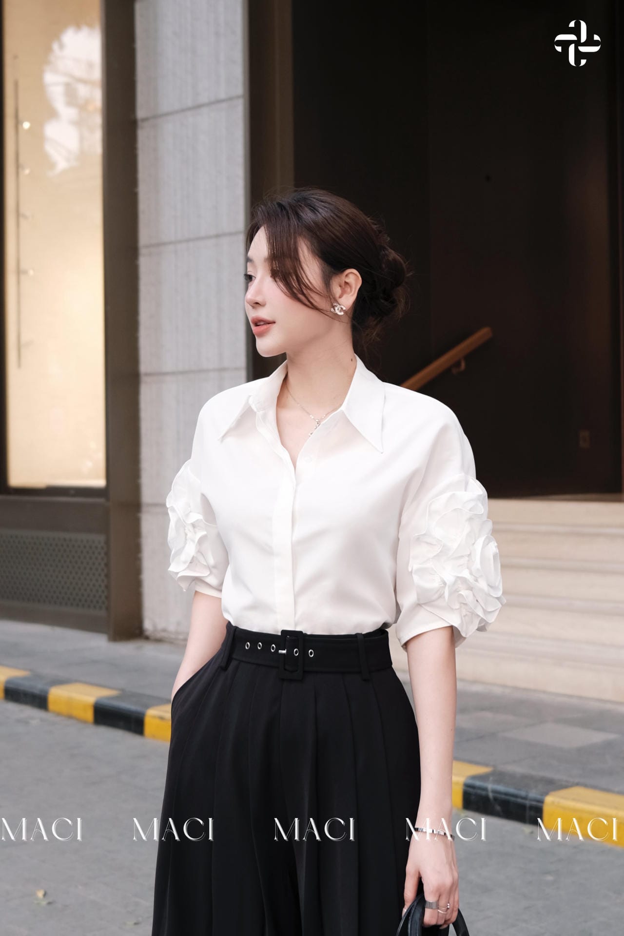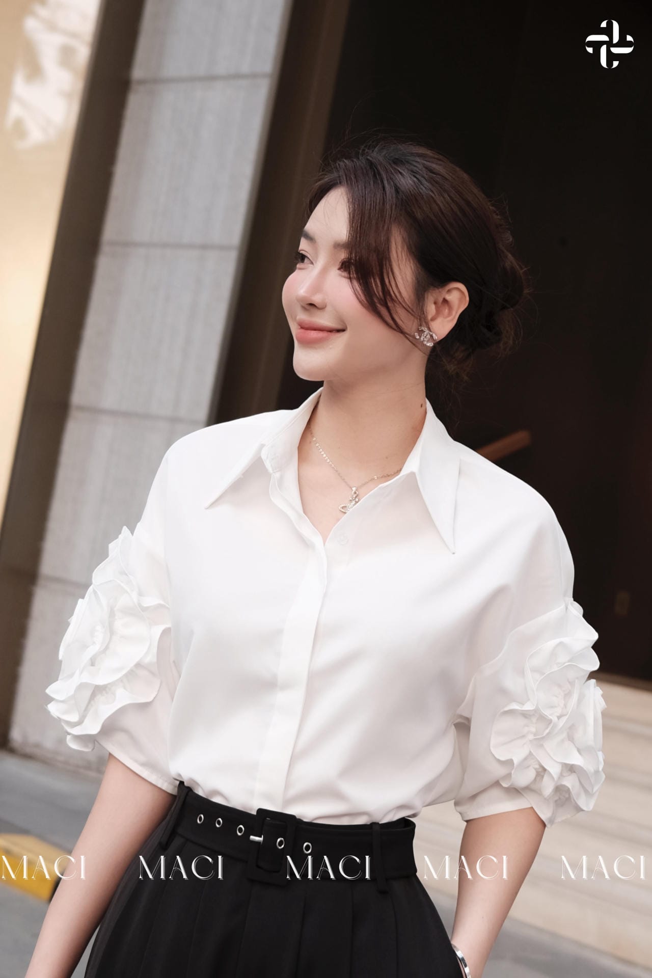 Áo Sơ Mi Trắng Tay Hoa MACI by MKC Thời Trang Nữ Thiết Kế Độc Quyền