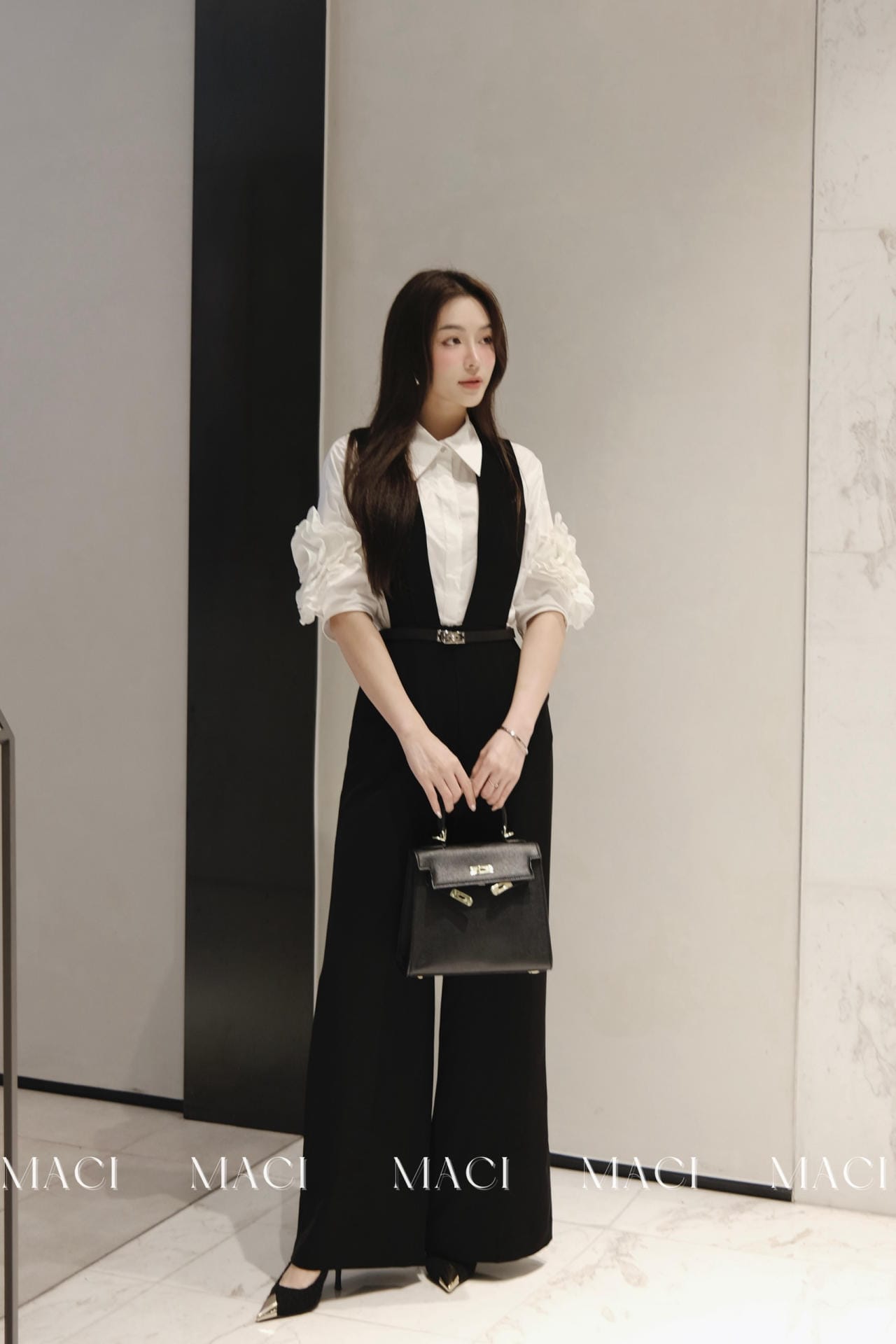 – Bộ jumpsuit dài kết hợp áo sơ mi tay bèo chính là item thời trang không thể thiếu cho nàng yêu thích phong cách thanh lịch, sang trọng. Thiết kế tối giản nhưng tinh tế, giúp tôn dáng hoàn hảo, phù hợp với các buổi gặp gỡ đối tác, sự kiện hoặc dạo phố sành điệu.