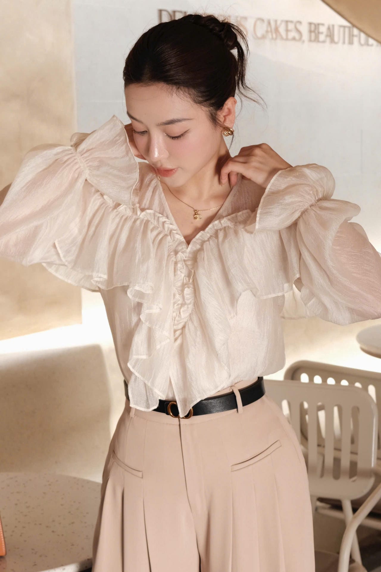 Áo Tơ Hàn Rũ Nhún Bèo MACI by MKC MCAADBE0085 Thời Trang Nữ Thiết Kế Độc Quyền Cao Cấp – Sang Trọng, Thanh Lịch Dễ Phối Đồ