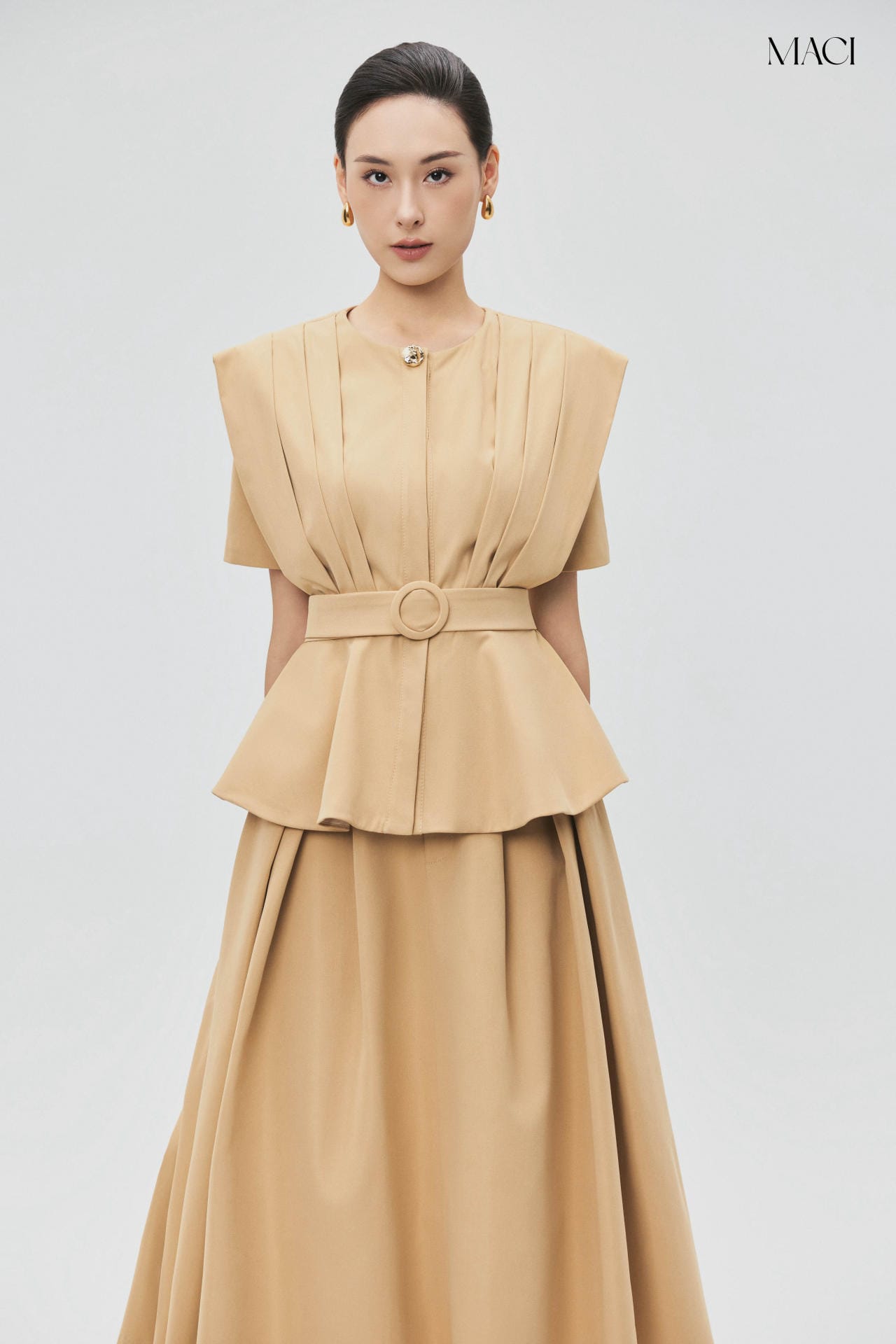 Chân Váy Xoè Bấu Li Kaki Màu Be MACI by MKC MCVCVBE0171 Thời Trang Nữ Thiết Kế Độc Quyền Công Sở Cao Cấp Sang Trọng Thanh Lịch Dễ Phối Đồ