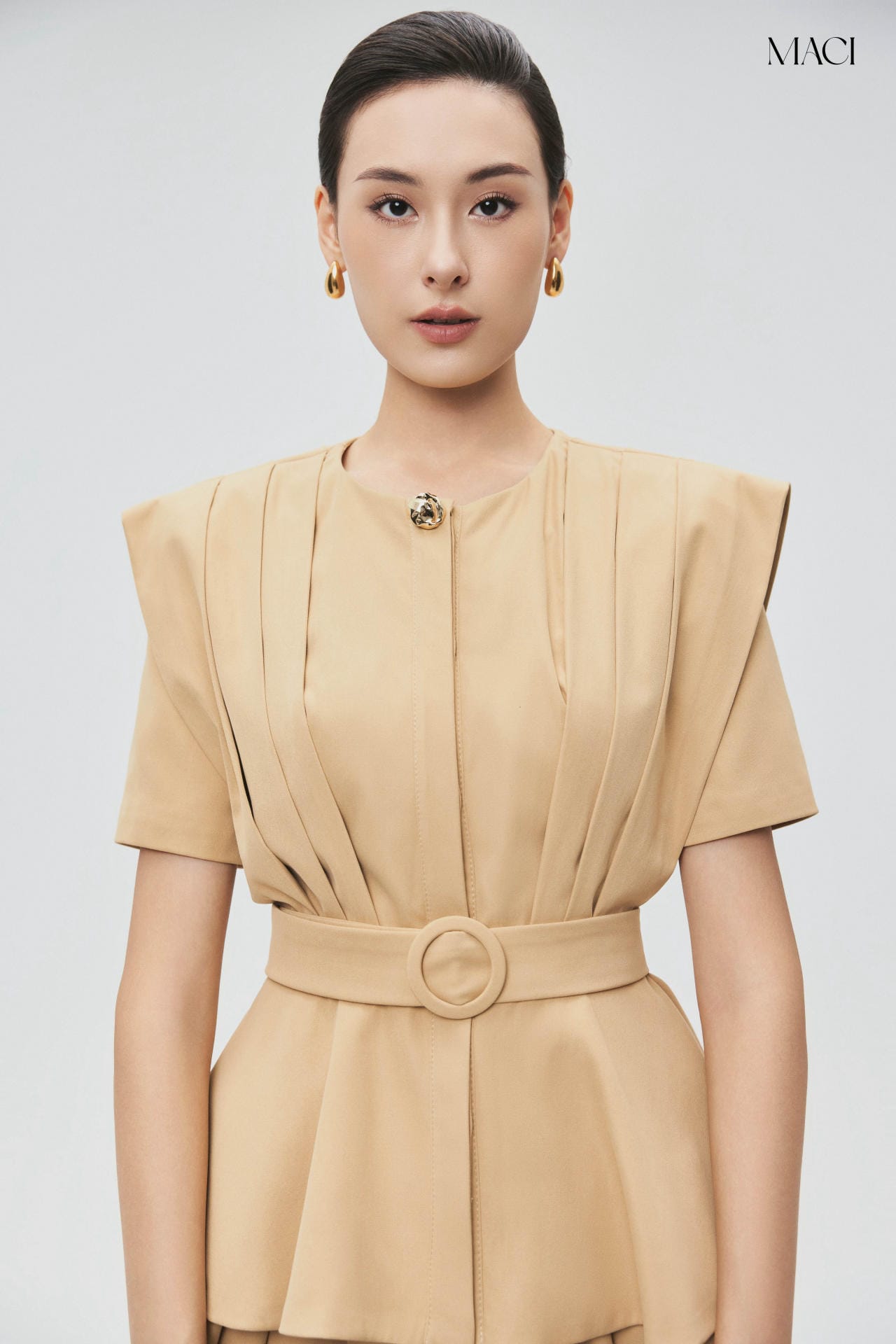 – Màu beige nhã nhặn, dễ phối cùng nhiều kiểu áo