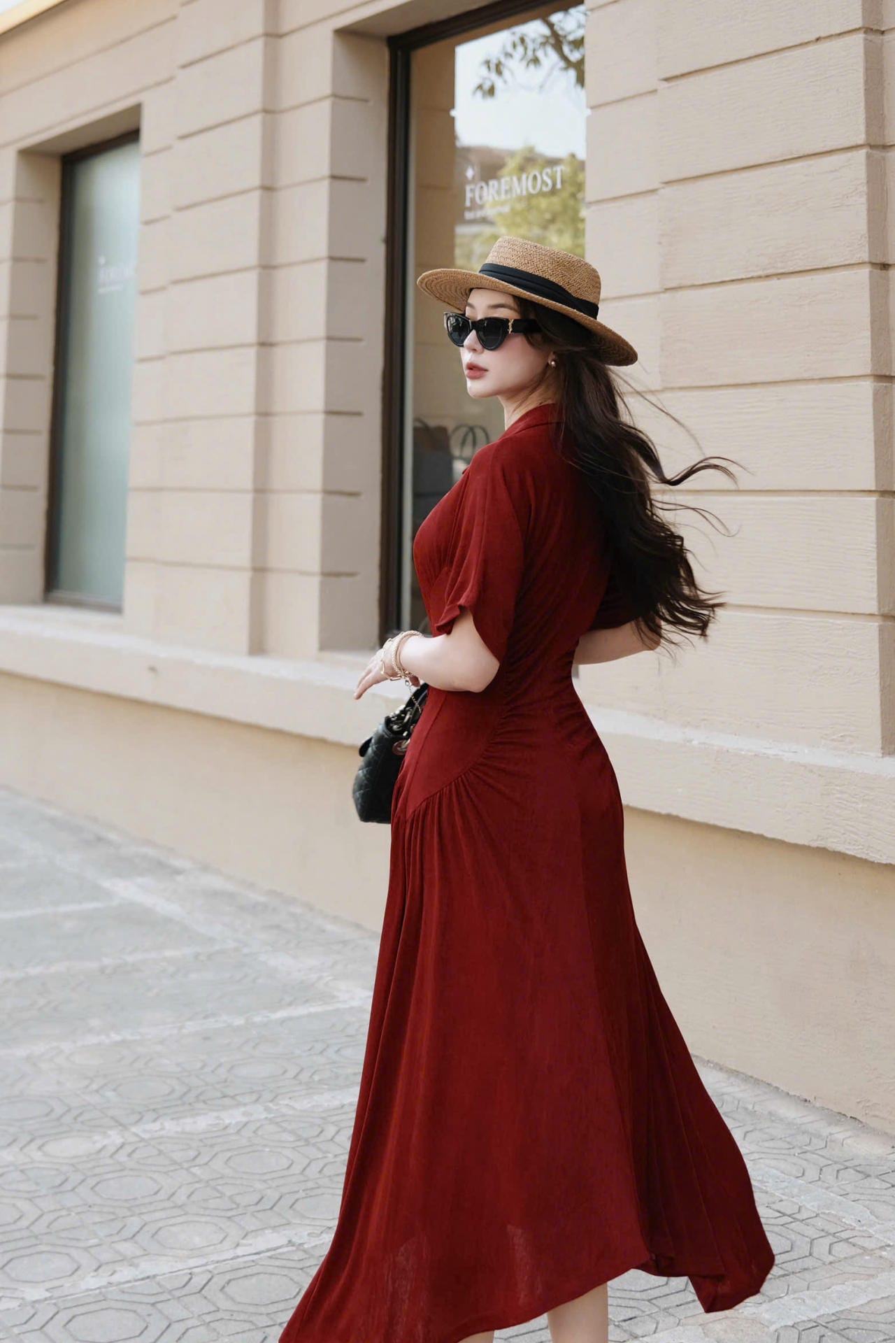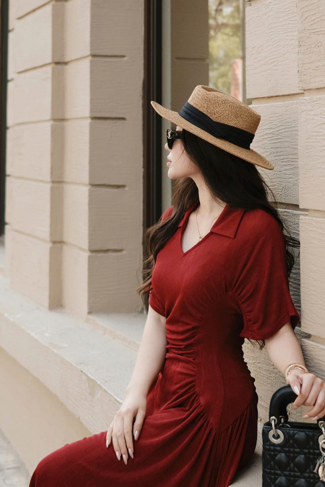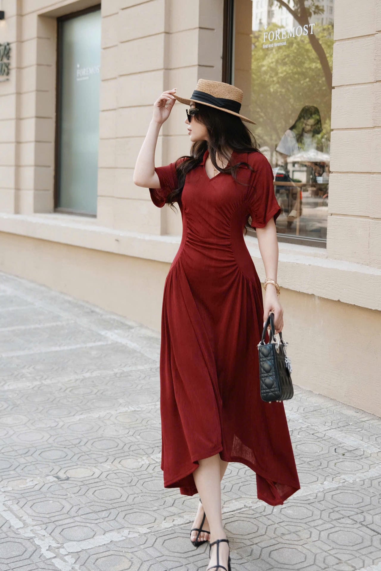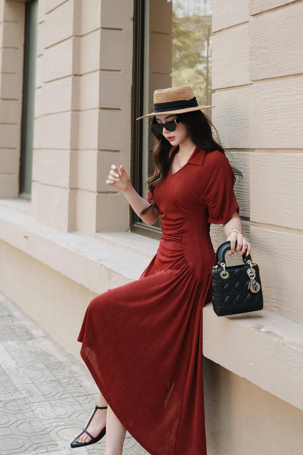 Đầm Dài Cổ Bẻ Nhún Eo Chất Liệu Nhúng Hàn 2 Lớp MACI by MKC MCVVADO0115 Thời Trang Nữ Thiết Kế Độc Quyền Cao Cấp – Sang Trọng, Thanh Lịch Dễ Phối Đồ