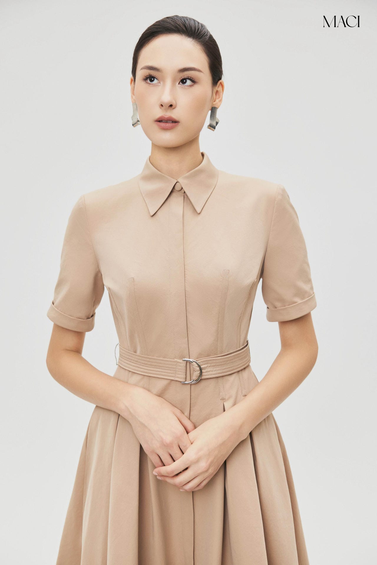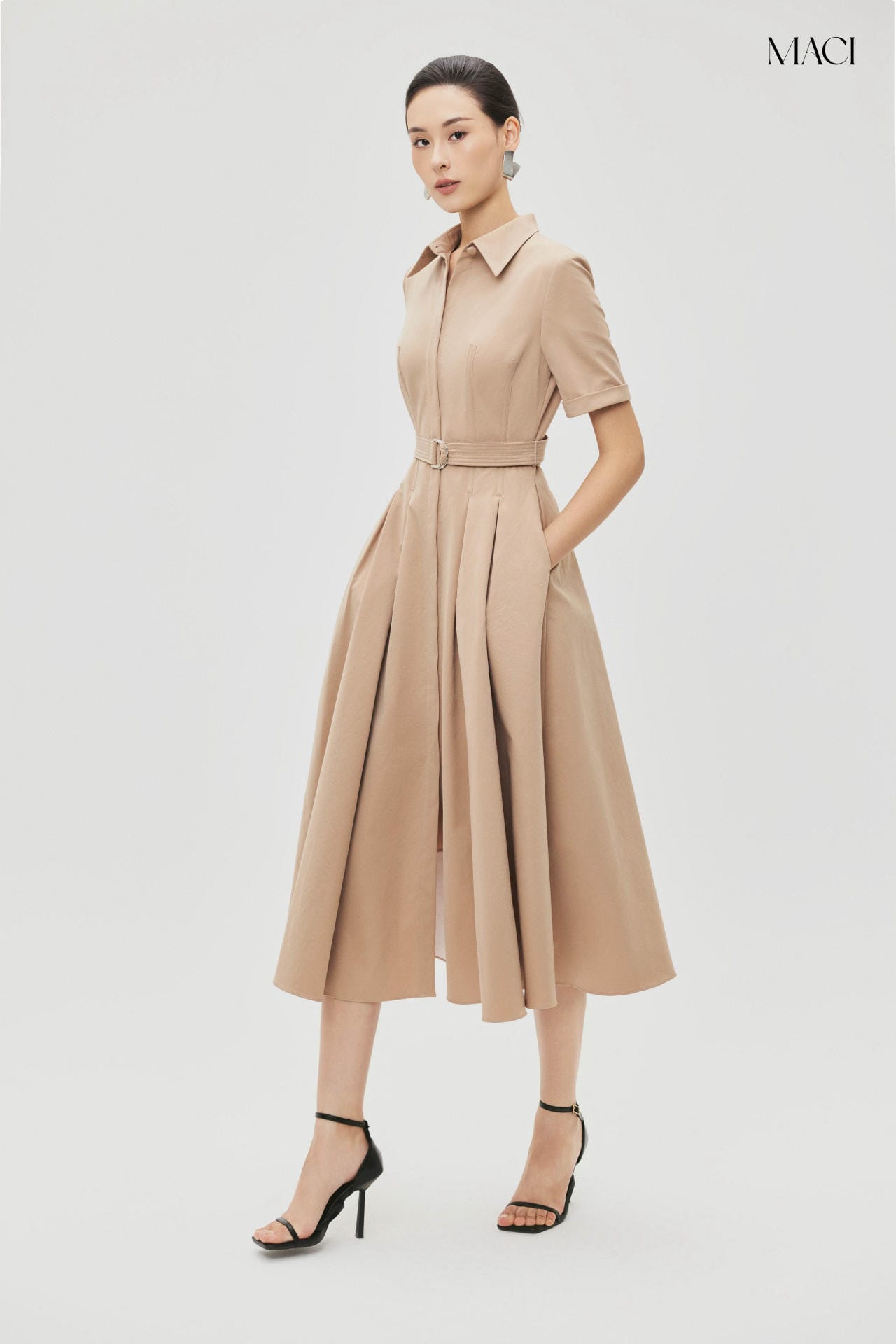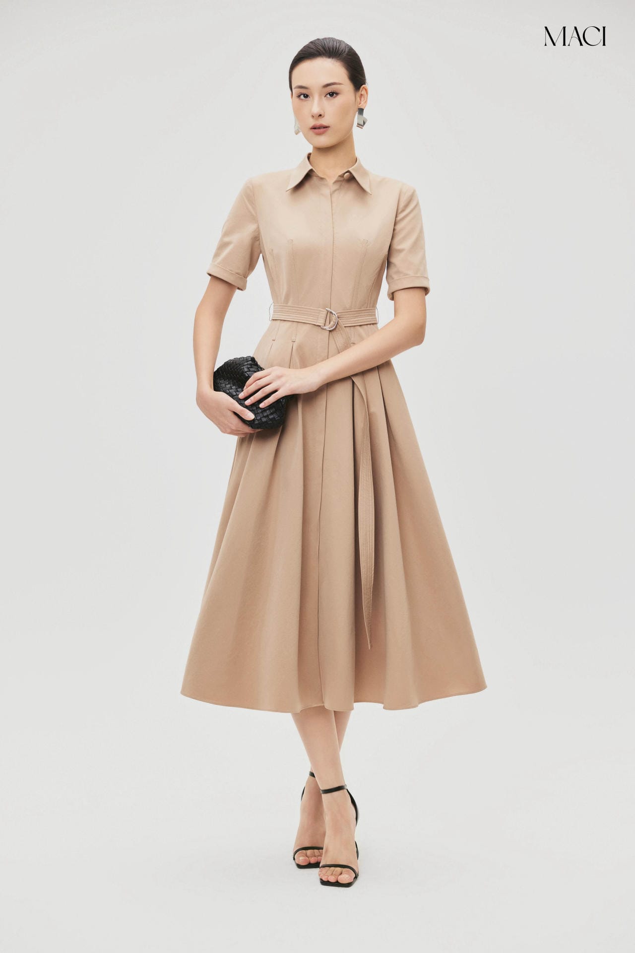Đầm Kaki Cổ Đức Kèm Đai Màu Be MACI by MKC MCVVABE0176 Thời Trang Nữ Thiết Kế Độc Quyền Công Sở Cao Cấp Sang Trọng Thanh Lịch Dễ Phối Đồ