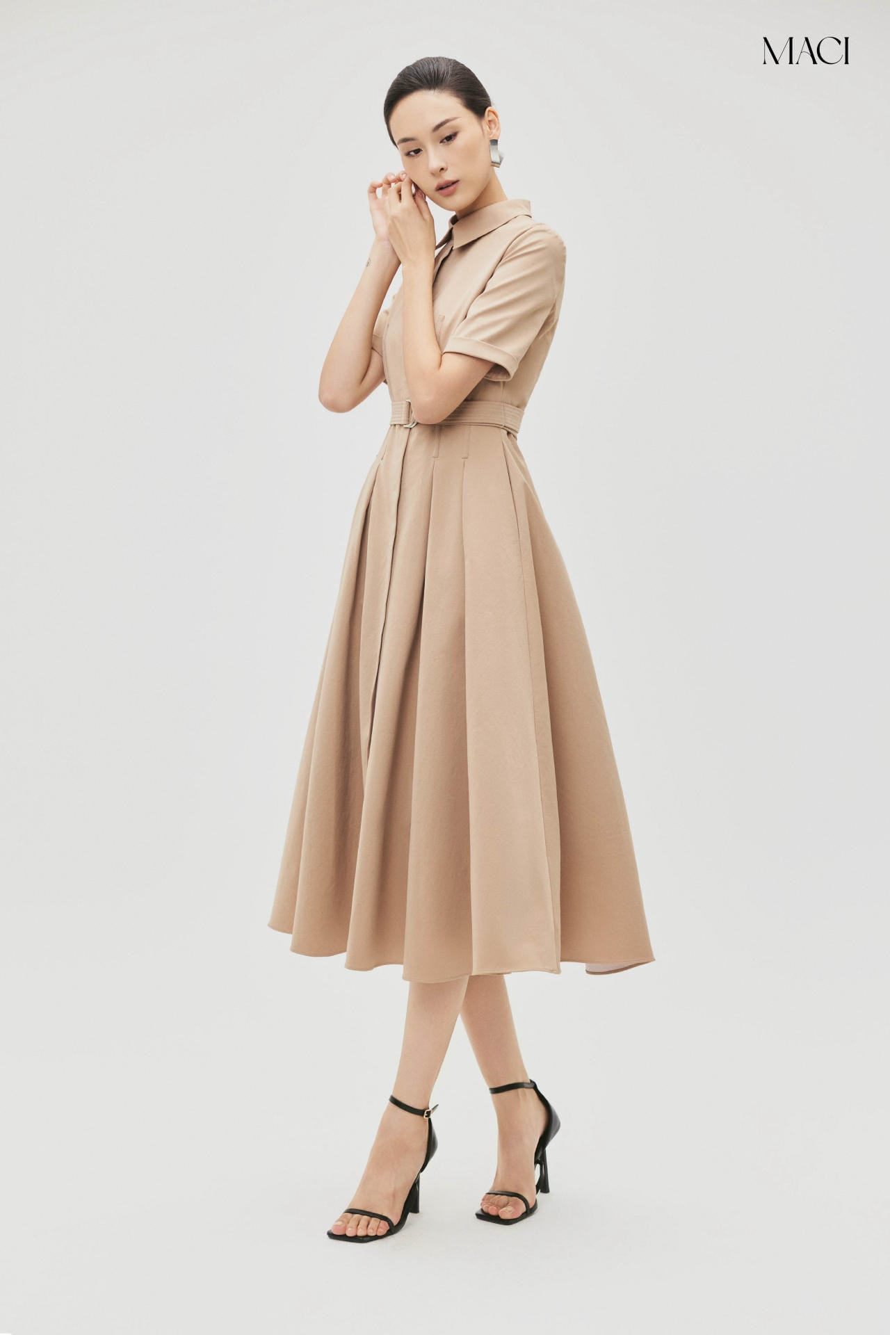 Đầm Kaki Cổ Đức Kèm Đai Màu Be MACI by MKC MCVVABE0176 Thời Trang Nữ Thiết Kế Độc Quyền